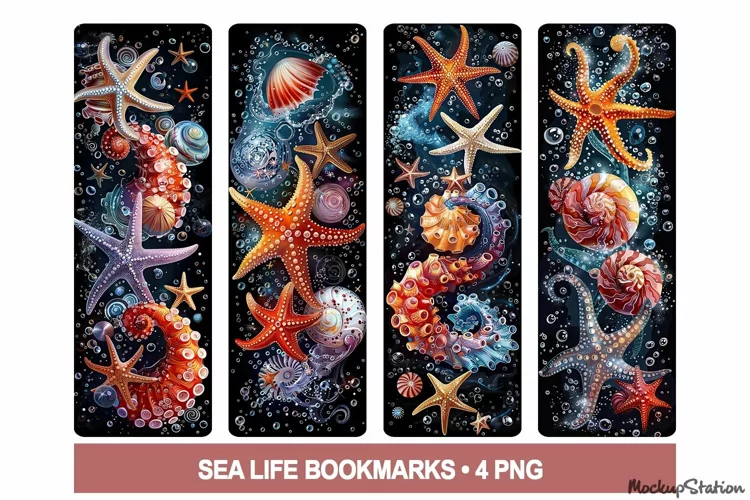 Sea Life Bookmarks PNG Printable | Underwater Holiday Scrapbooking Design