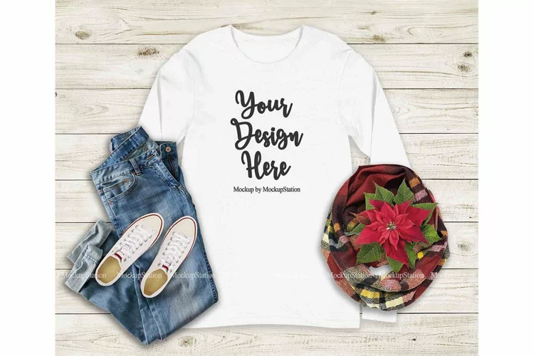 Flat Lay T-shirt Mockup Christmas Mock Up Long Sleeve Mockup Long Sleeve Flat Lay Flat Lay Mock Up Flat Lay Shirt Women Shirt Mockup Unisex T-shirt Flat Youth Mockup