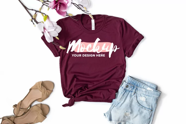Bella Canvas 3001 Maroon Flat Lay T-shirt Mockup