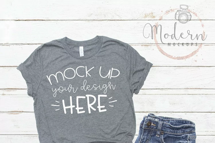 Mock up Bella Canvas 3001 Deep Heather Unisex Mockup
