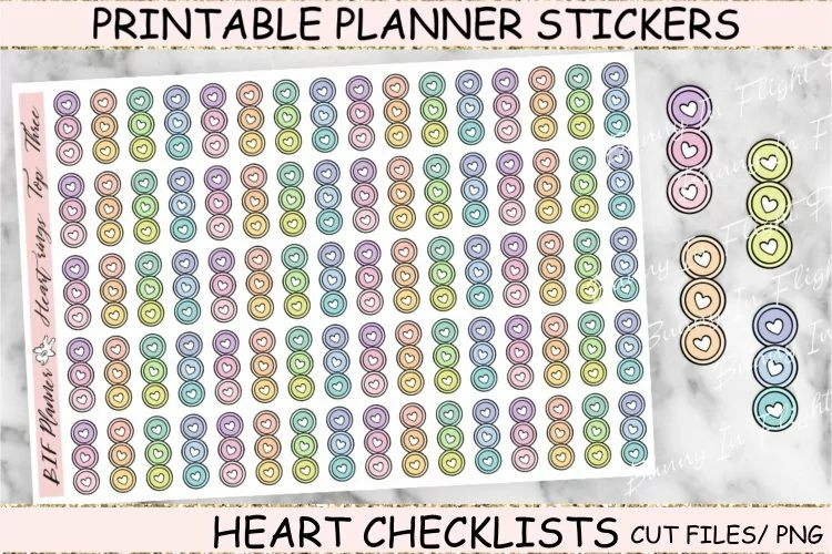 The adorable Checklist Hearts Icons Sticker kit comes with everything you need to decorate your planner!