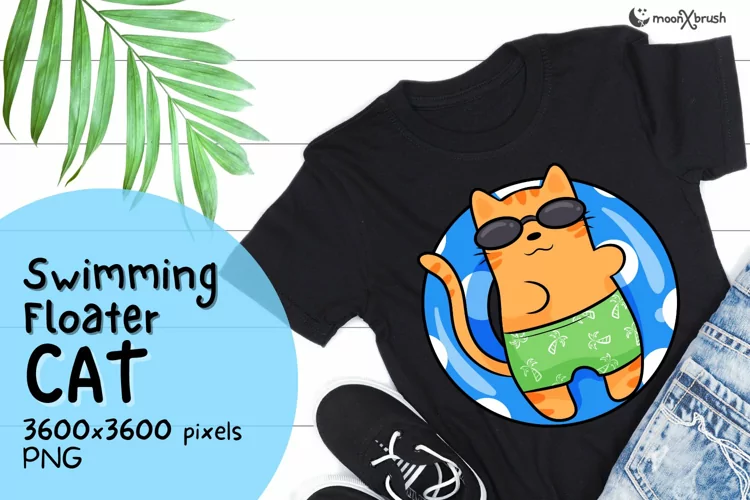 Swimming Floater Cat Sublimation Design , Summer Cat PNG