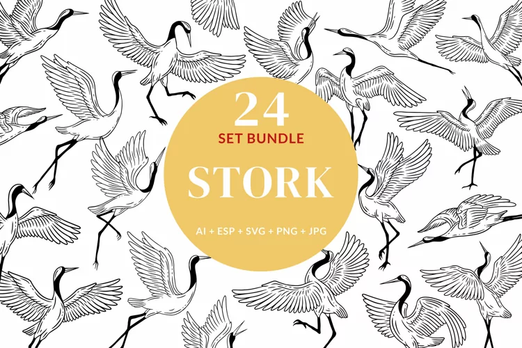 Similar Design Products to 24 Set Bundle Stork Crane Swan Wild Animal Bird Hand Drawn
