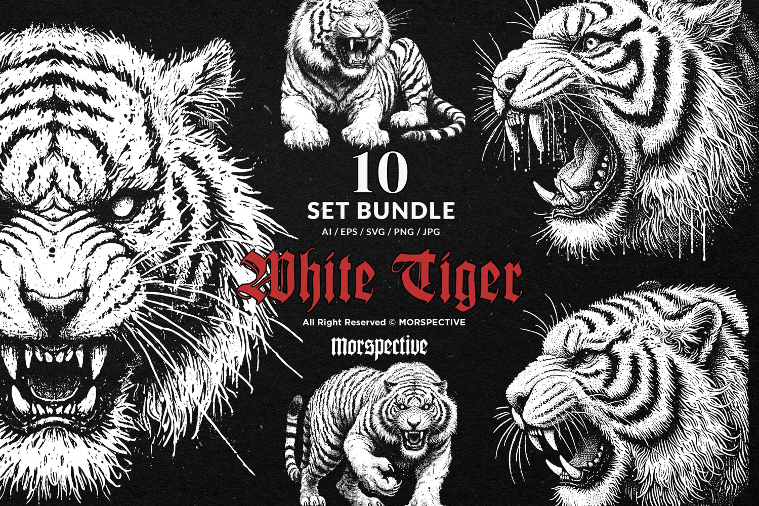 10 Bundle Dark Art White Tiger Animal Angry Beast Tattoo example image 1