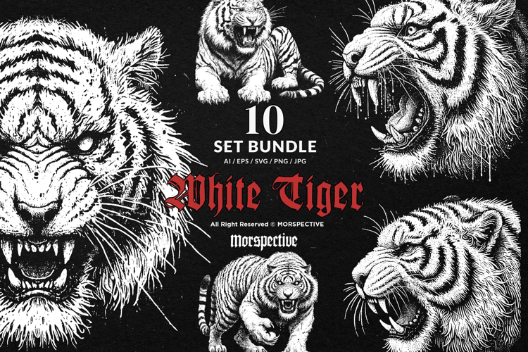10 Bundle Dark Art White Tiger Animal Angry Beast Tattoo