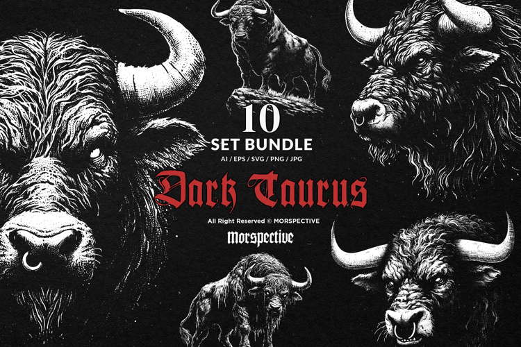 10 Bundle Dark Art Taurus Beast Bull Zodiac Animal with Horn example image 1