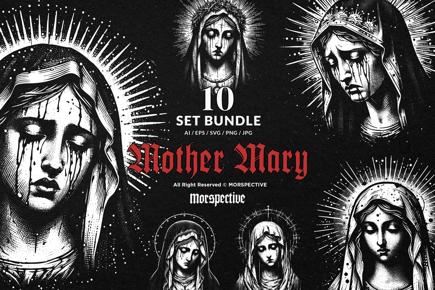 10 Bundle Dark Art Mother Mary Praying Girl God Skull Tattoo example image 1