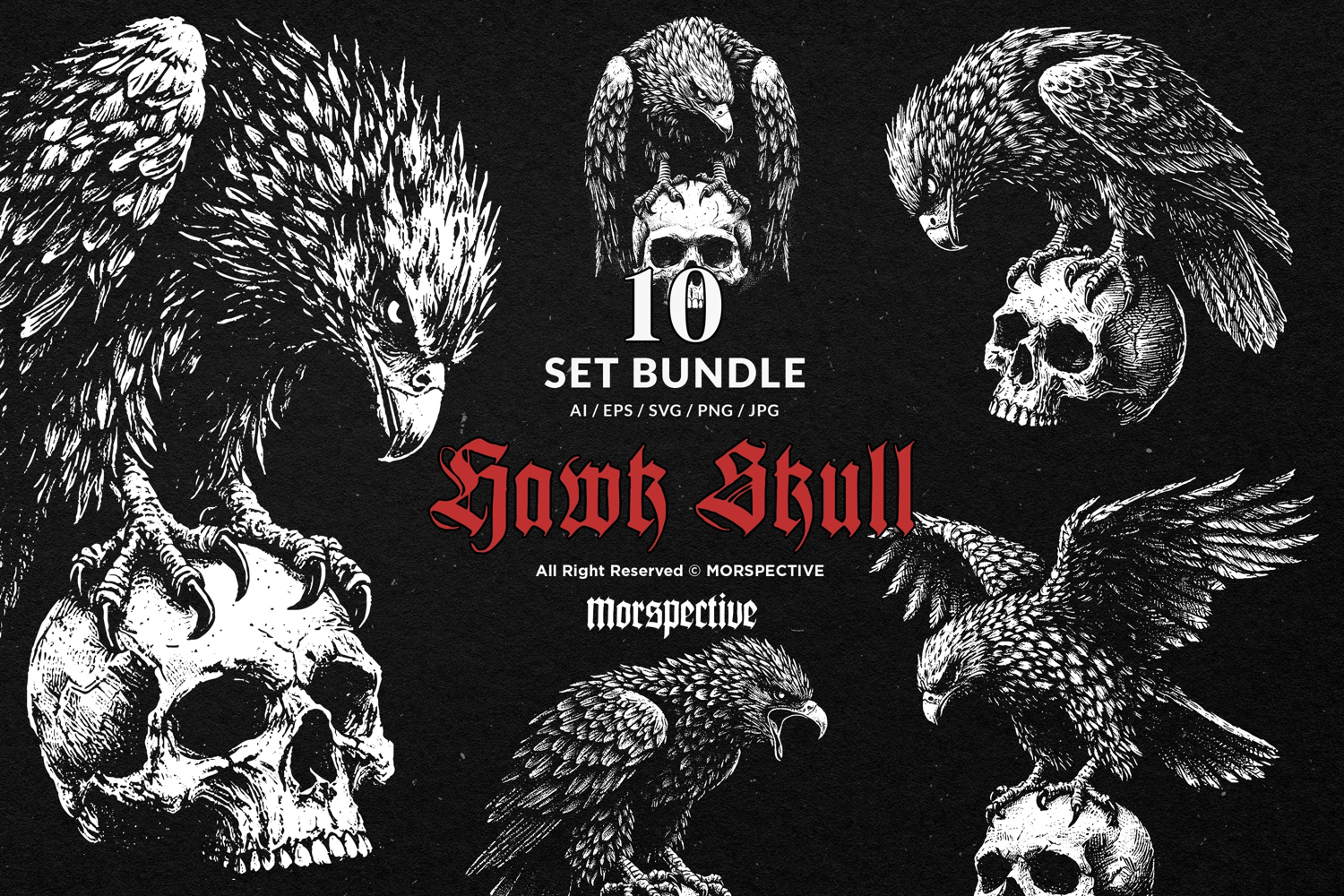 10 Bundle Dark Art Hawk Skull Bird Eagle Wings Predator example image 1