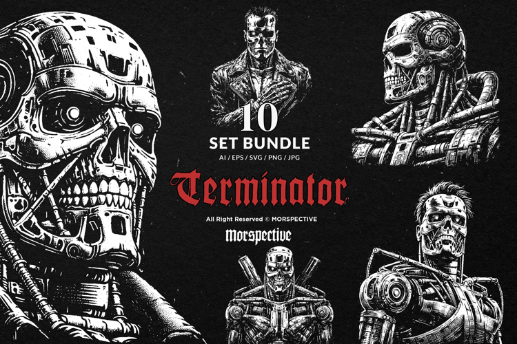 10 Bundle Dark Art Terminator Robot cyborg Engine Skull example image 1