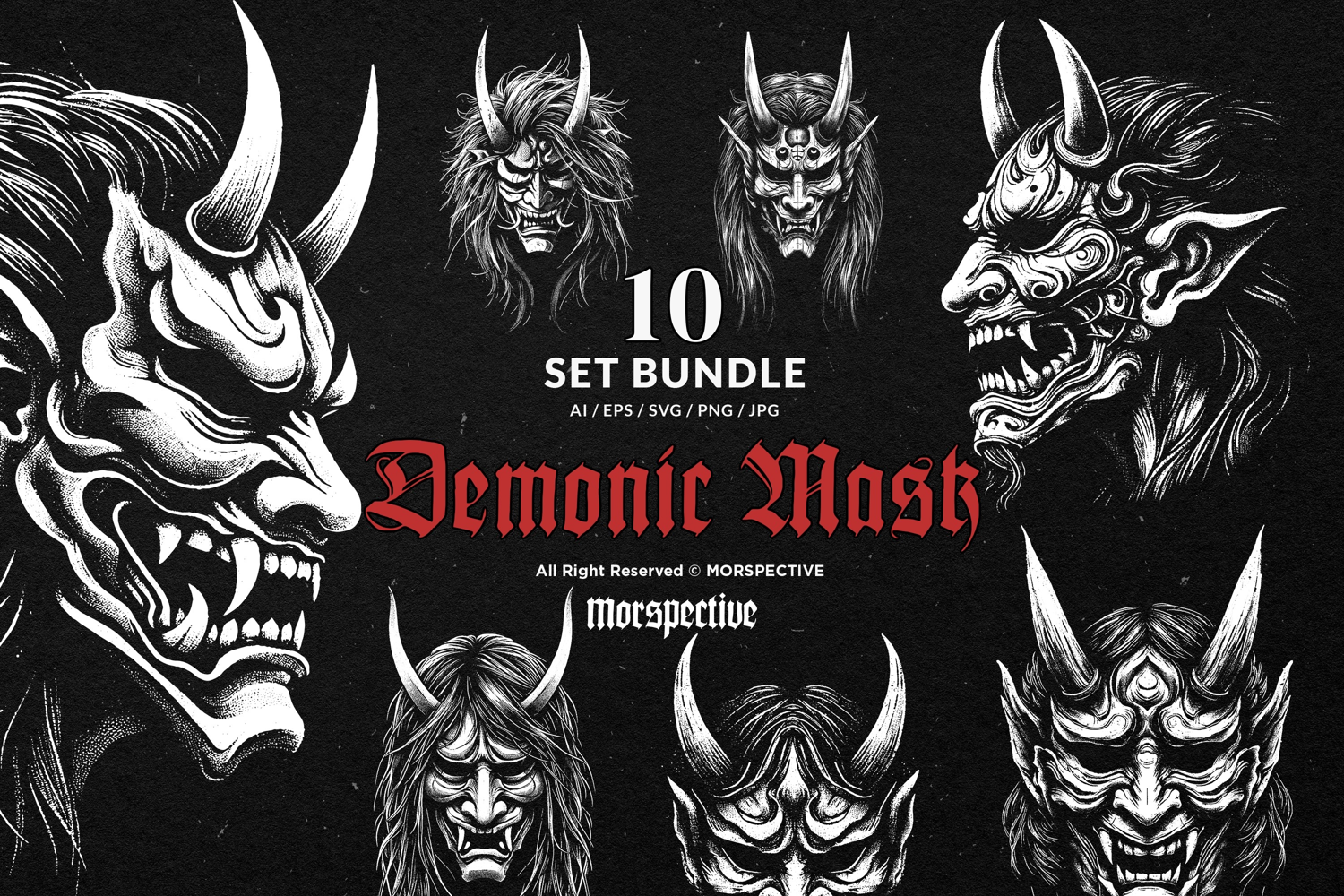 10 Bundle Dark Art Japanese Demonic Hannya Mask Oni Skull example image 1
