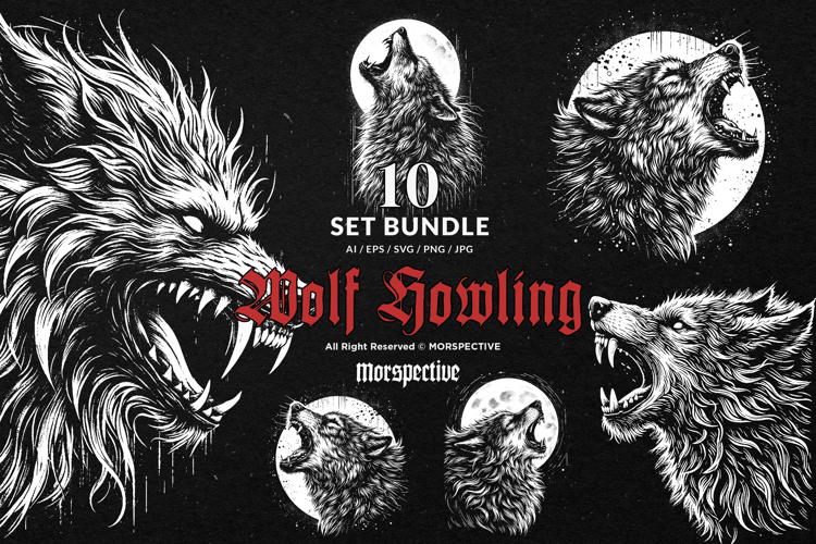 10 Bundle Dark Art Wolf Howling Beast Fangs Werewolf Skull