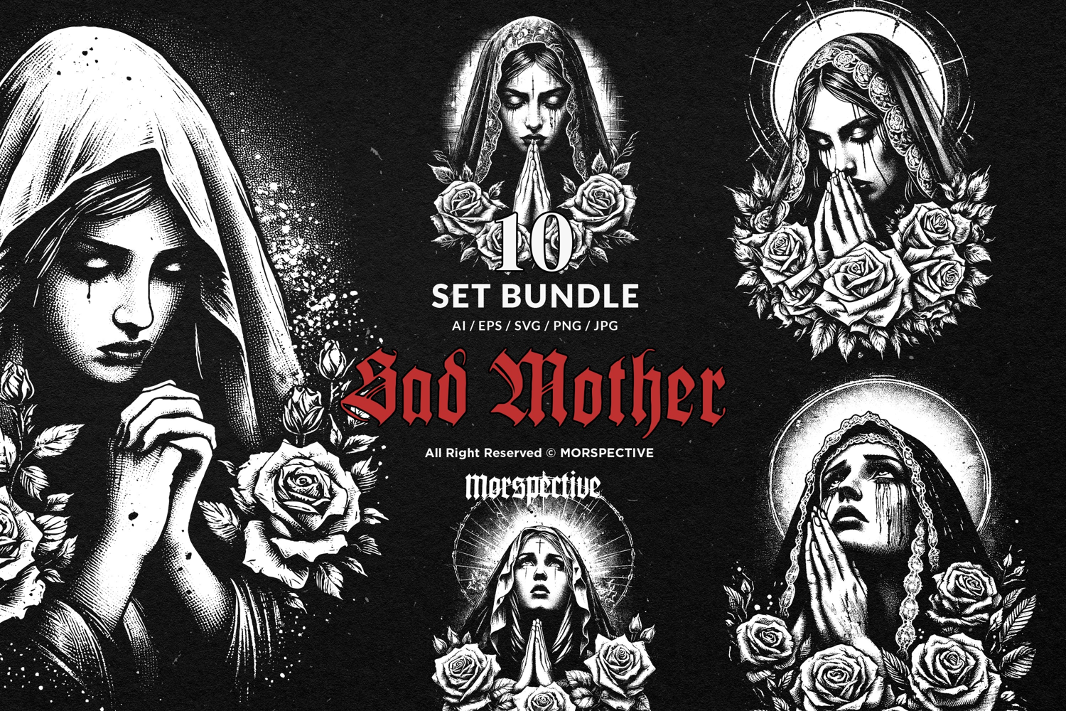 10 Bundle Dark Art Skull Sad Mother Marry Praying Rose Women