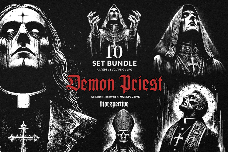 10 Bundle Dark Art Demon Priest Heretic Skull Satan Death example image 1