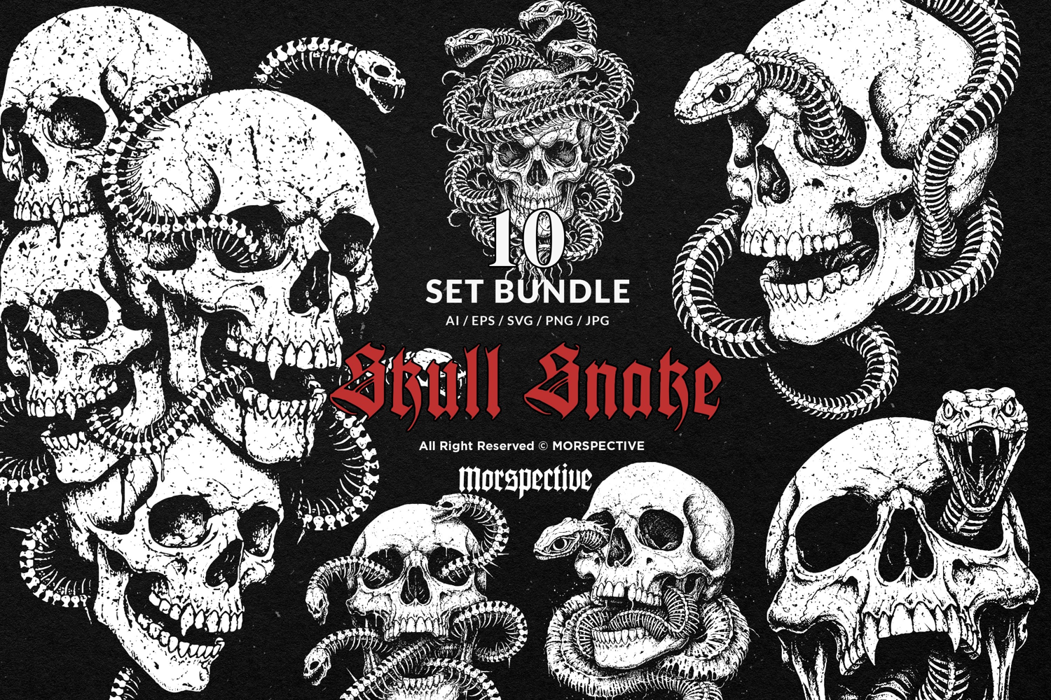 10 Bundle Dark Art Skull Snake Bone Skeleton Death Tattoo example image 1