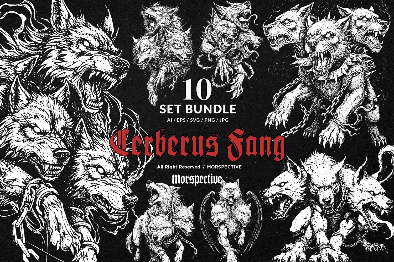 10 Bundle Dark Art Cerberus Fangs Wolf Animal Lion Creature example image 1