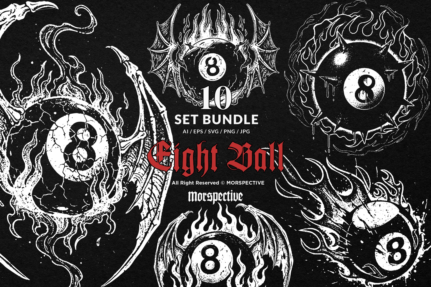 10 Bundle Dark Art Eight Ball Billiard Devil Ball Fire Ball example image 1