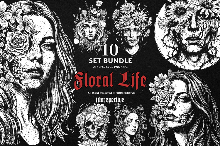 10 Bundle Dark Art Floral Life Girl Women with Rose Plant