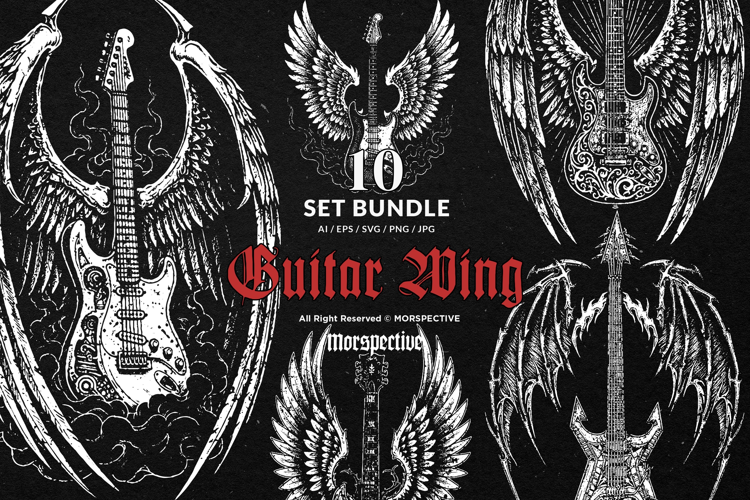 10 Bundle Dark Art Guitar Wings Music Acoustic Guitarist