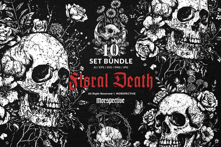 10 Bundle Dark Art Floral Death Skull Flower Head Skeleton example image 1
