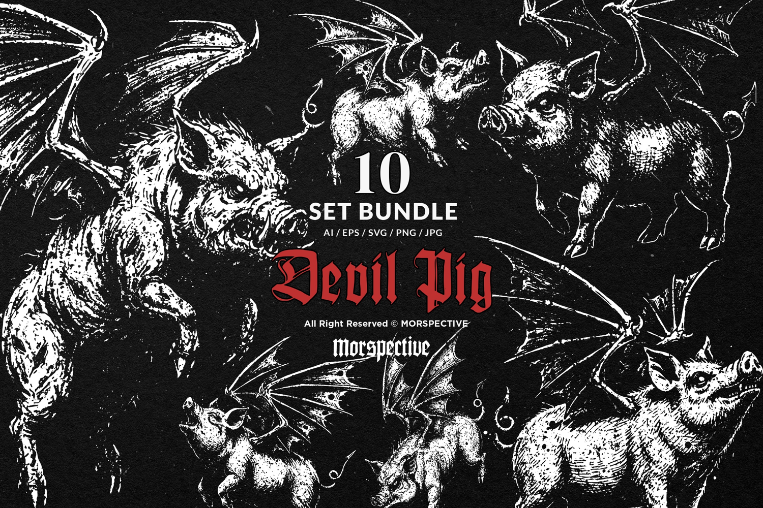10 Bundle Dark Art Devil Pig Demon pig With Wing Boar Piglet example image 1