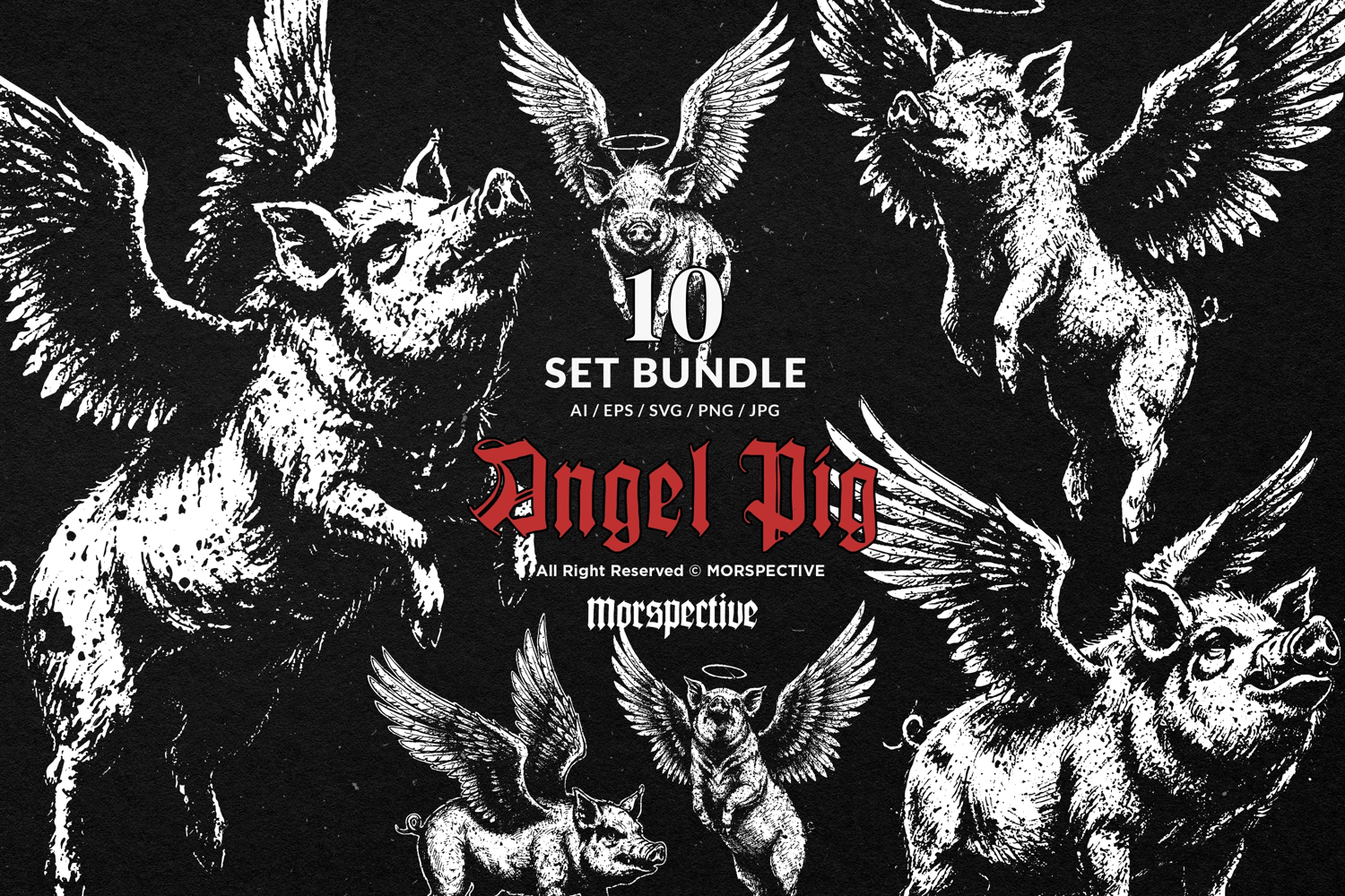 10 Bundle Dark Art Angel Pig with Wings Hog Boar Flying example image 1
