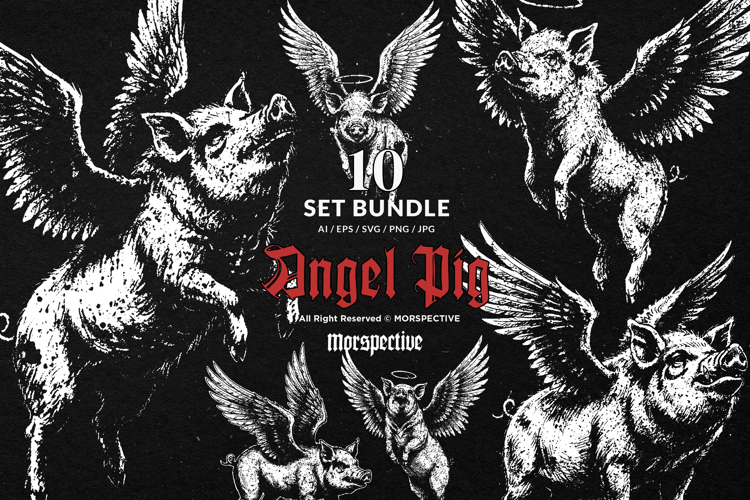 10 Bundle Dark Art Angel Pig with Wings Hog Boar Flying
