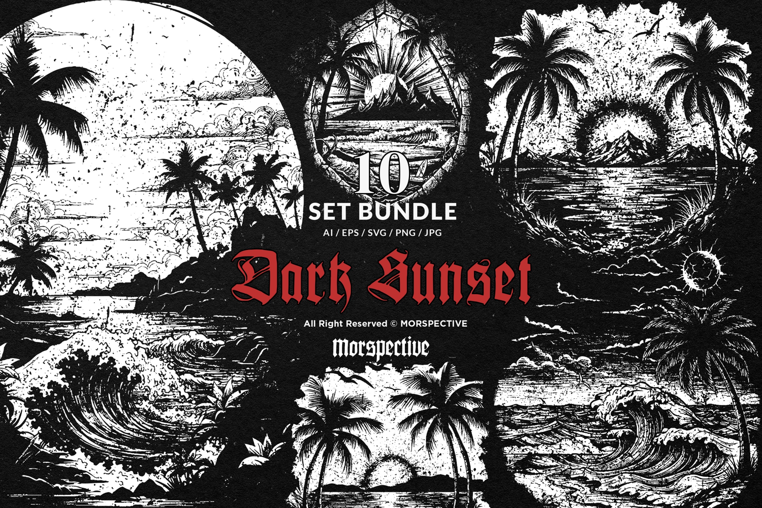10 Bundle Dark Art Sunset Vibes Beach island Wave Surf Sea
