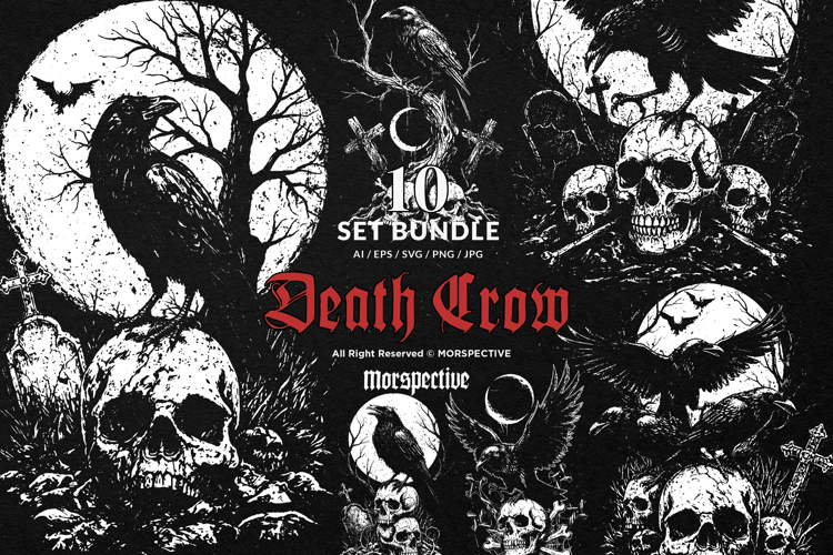 10 Bundle Dark Art Death Crows Skull Bird Flying Darkness example image 1