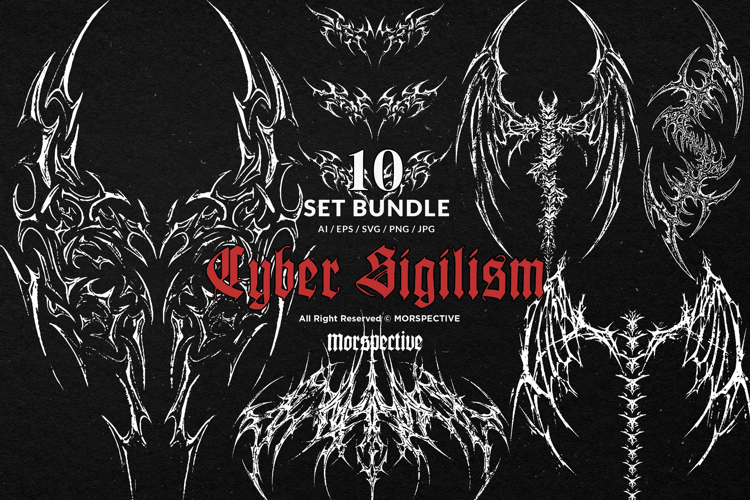 10 Bundle Dark Art Cyber Sigilism Tribal Symbol Motif