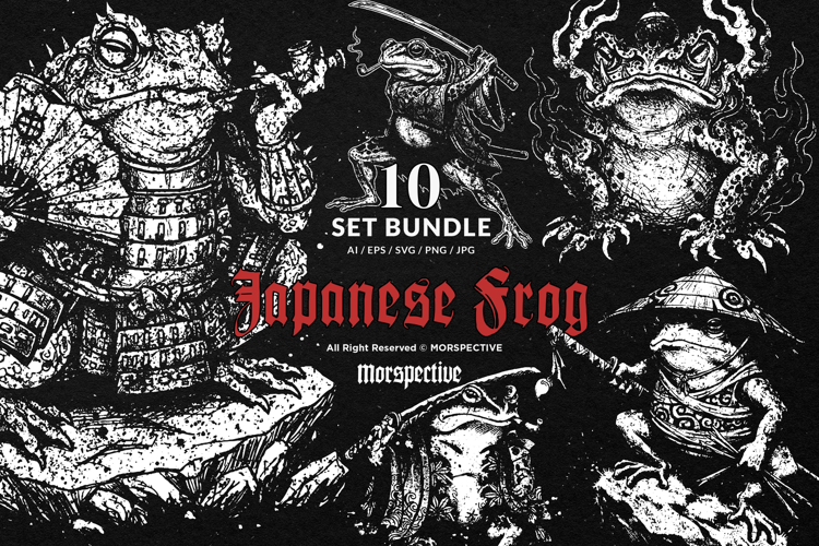 10 Bundle Dark Art Japanese Frog Yakuza Samurai Katana Ninja