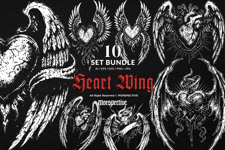 10 Bundle Dark Art Heart Wing Angel Broken Love Hate Emotion