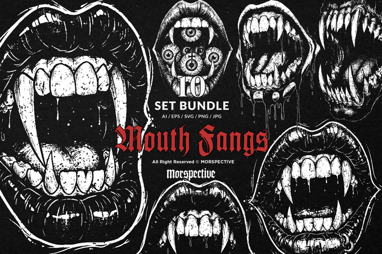 10 Bundle Dark Art Mouth Fangs Vampire Teeth Tongue Lips