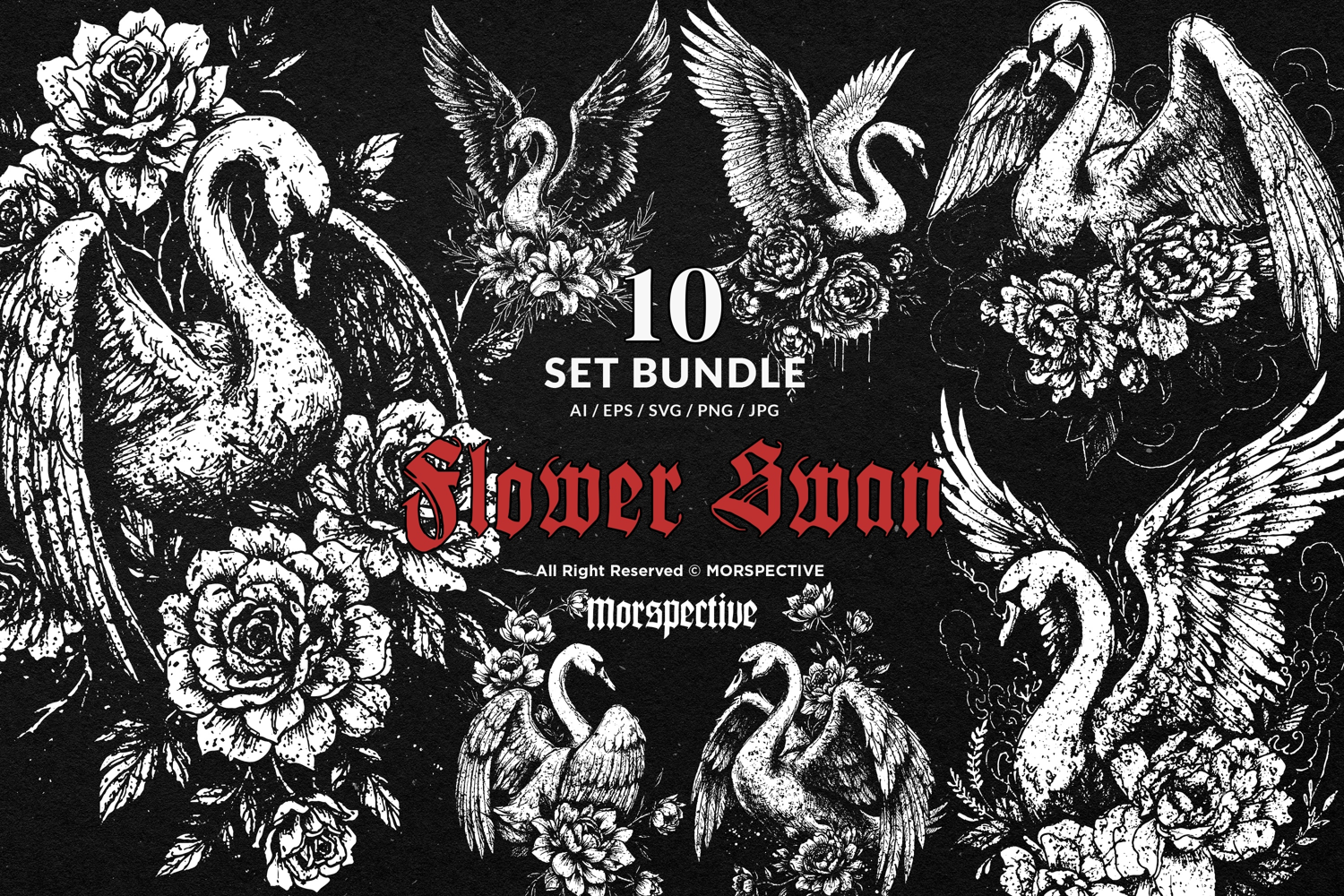 10 Bundle Dark Art Swan Floral Flower Bird Swan Feathers example image 1