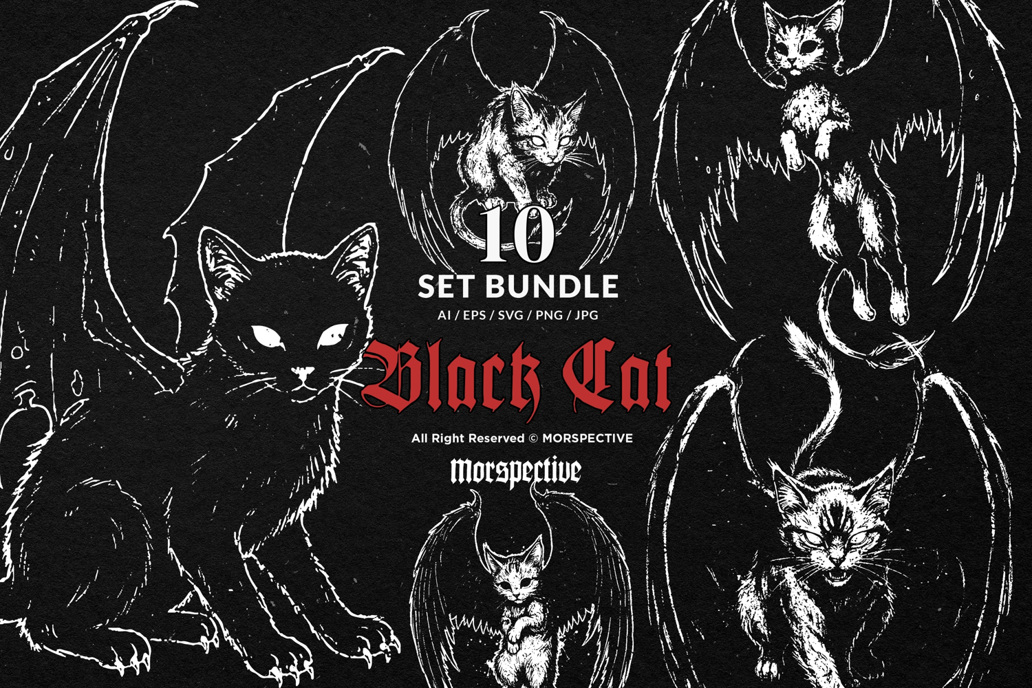 10 Bundle Dark Art Cat Wing Kitten Claws Fur Meow Demon example image 1