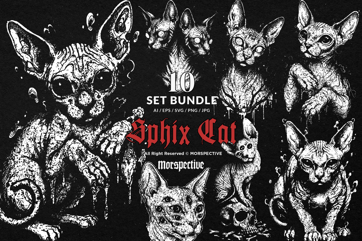 10 Bundle Dark Art Sphix Cat Skull Head Magical Kitten example image 1