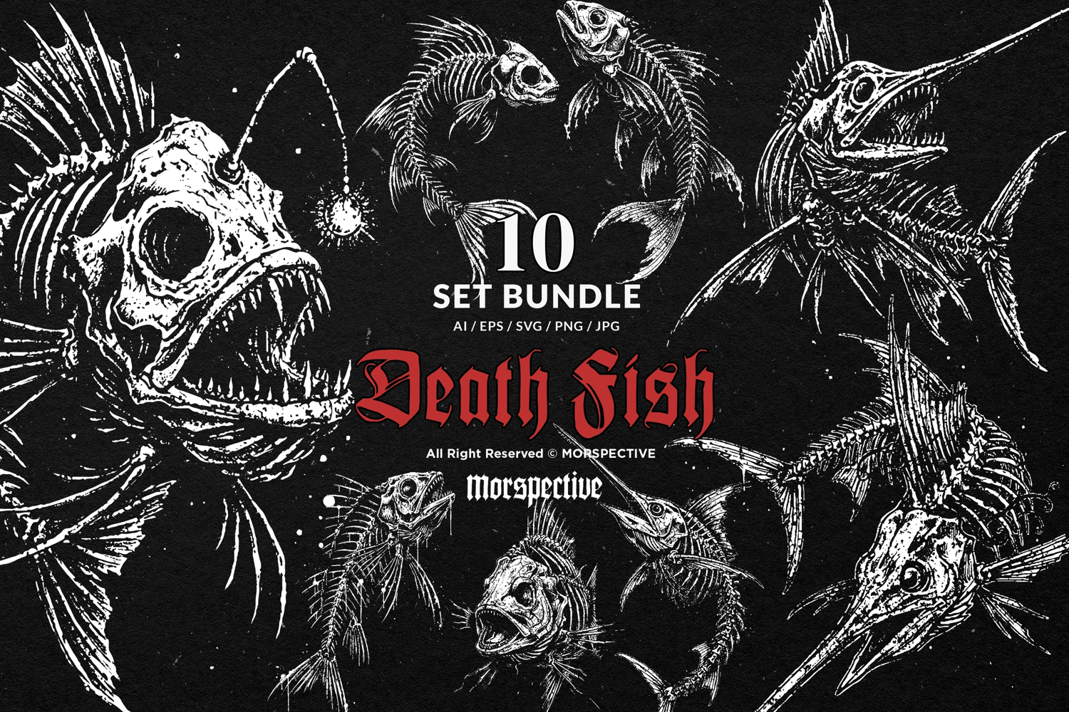 10 Bundle Dark Art Death Fish Bone Sea Ocean Skeleton Skull