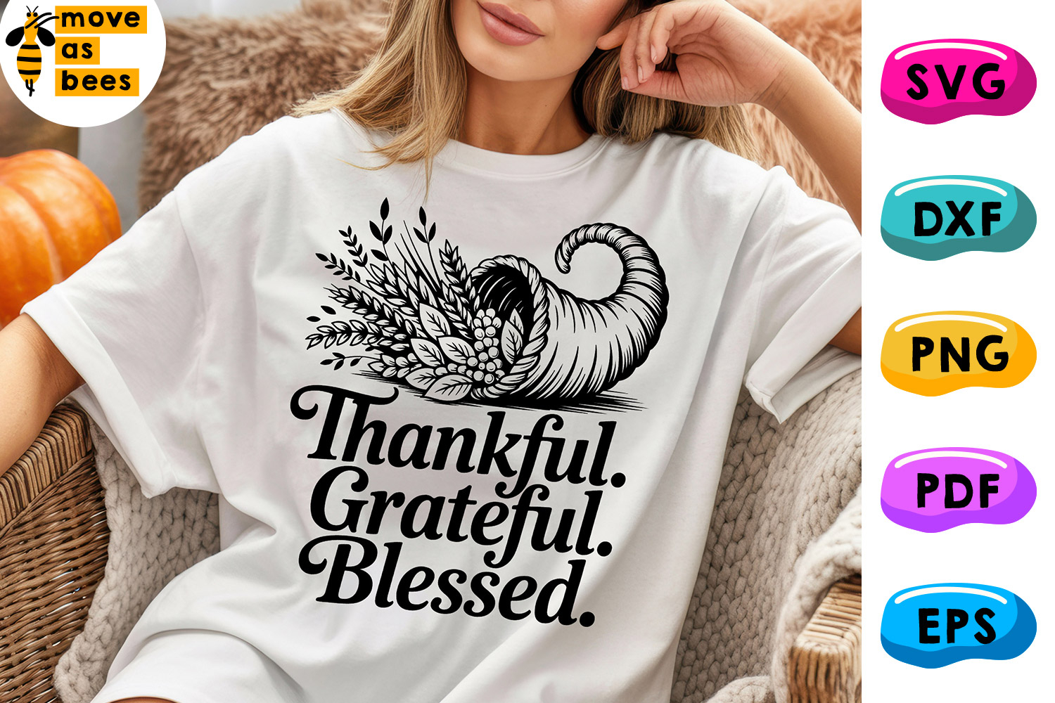 Thankful Grateful Blessed Svg, Png, Thanksgiving Day Shirt , Template for Sublimation, Cricut, Silhouette, Iron on, Heat Press Transfer