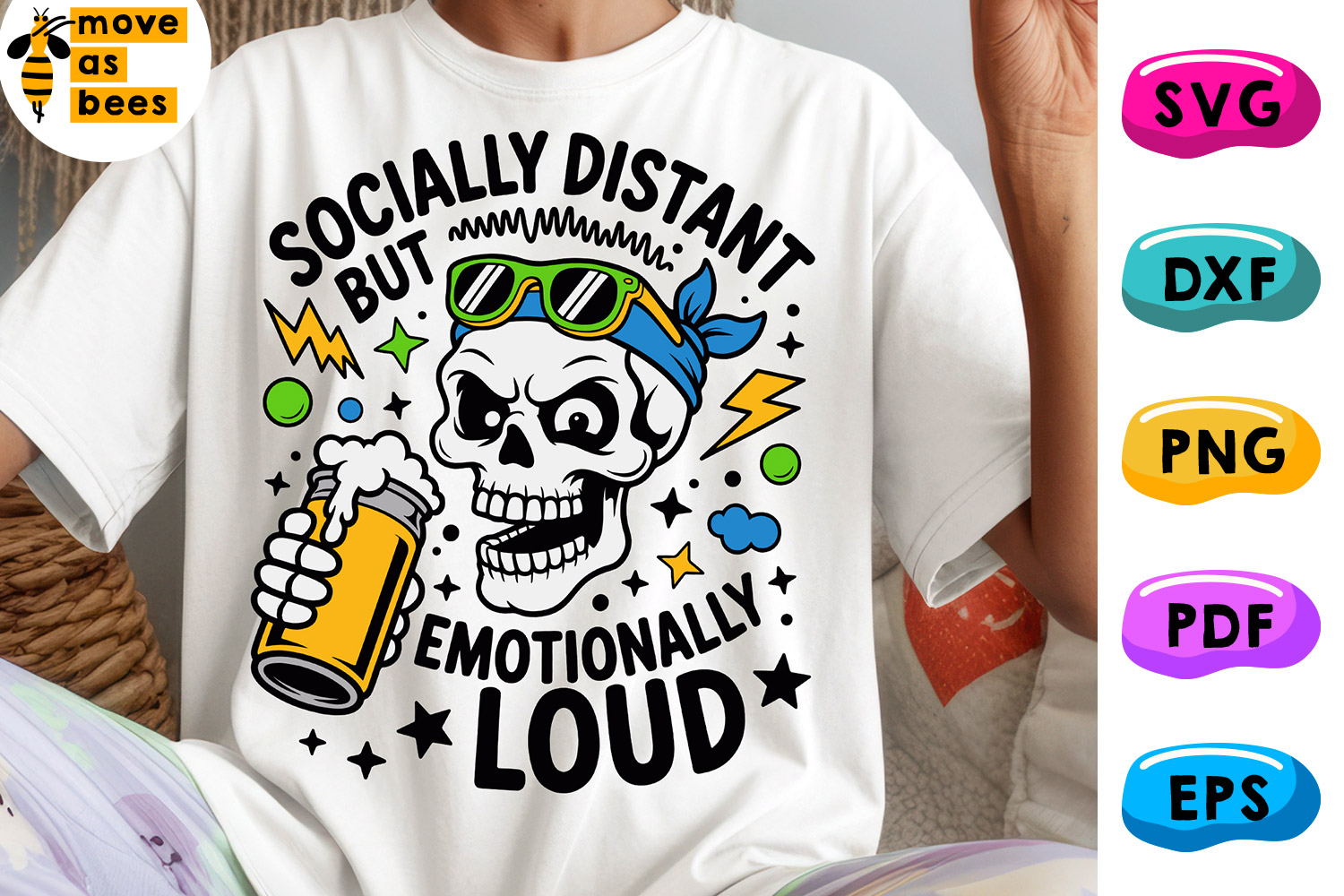 Socially Distant But Emotionally Loud Svg, Png, Skull Shirt, Template for Sublimation, Cricut, Silhouette, Iron on, Heat Press Transfer