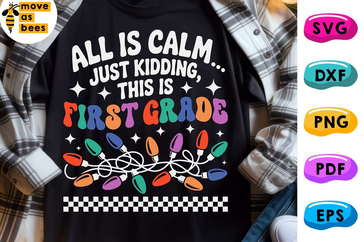 Cricut Cut File Teacher Gift Christmas Shirt Svg Heat Press Transfer 1st Grade Teacher Svg Iron On Vinyl Decal Teacher Christmas Shirt Svg Silhouette Dxf Image Sublimation Png Clip Art All Is Calm Just Kidding This Is First Grade Svg