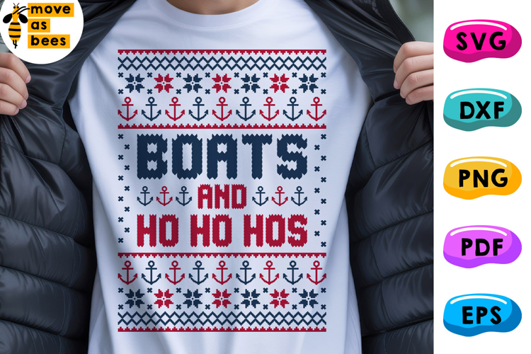 Boats and Ho Ho Hos Svg, Png, Christmas Sailing Svg Shirt, Template for Sublimation, Cricut, Silhouette, Iron on, Heat Press Transfer