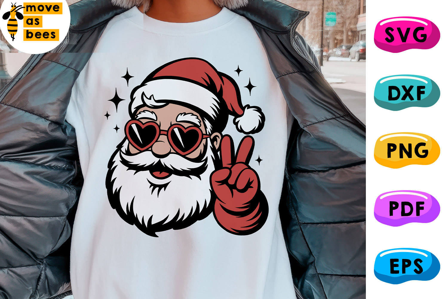 Merry Christmas Svg, Png, Retro Santa Sunglasses Peace Sign, Template for Sublimation, Cricut, Silhouette, Iron on, Heat Press Transfer