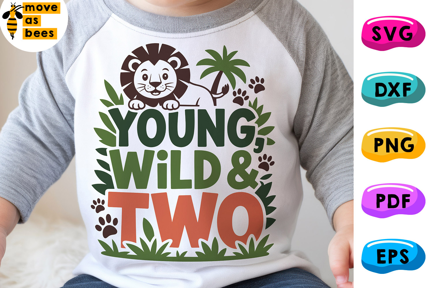 Young Wild & Two Svg, Png, Safari Lion 2nd Birthday Boy,Girl, Cricut, Sublimation, Silhouette, Iron on, Heat Press Transfer
