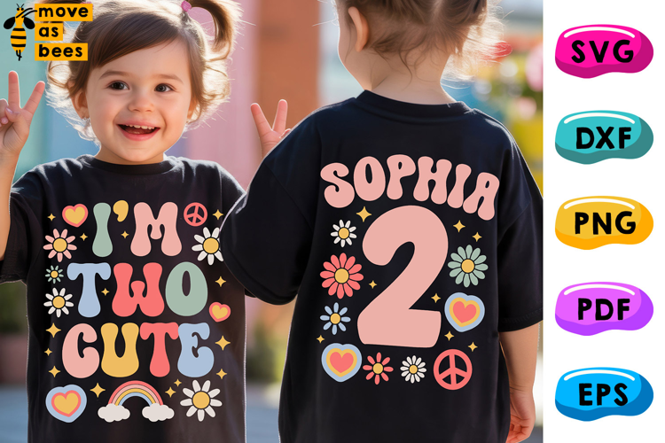 I'm Two Cute Svg, Png, Flowers 2nd Birthday Shirt, Girl, Boy, Cricut, Sublimation, Silhouette, Iron on, Heat Press Transfer