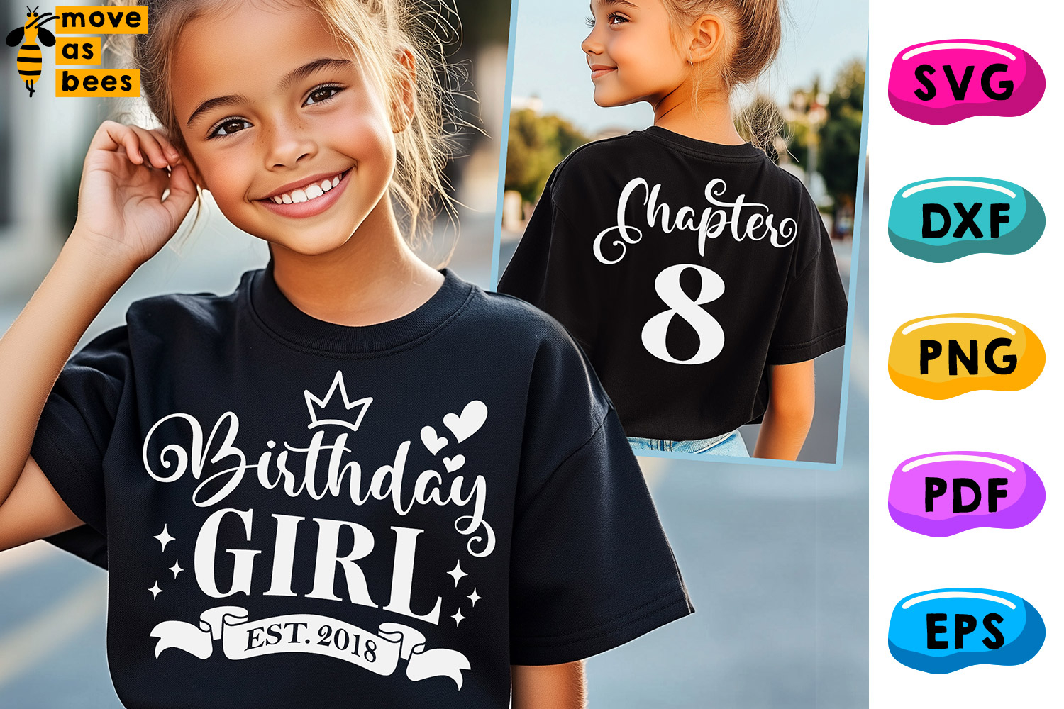 8th Birthday Girl Svg, Png, Est 2018, Chapter 8 Girl Shirt, for Cricut etc., Template for Sublimation, Cricut, Silhouette, Iron on, Heat Press Transfer