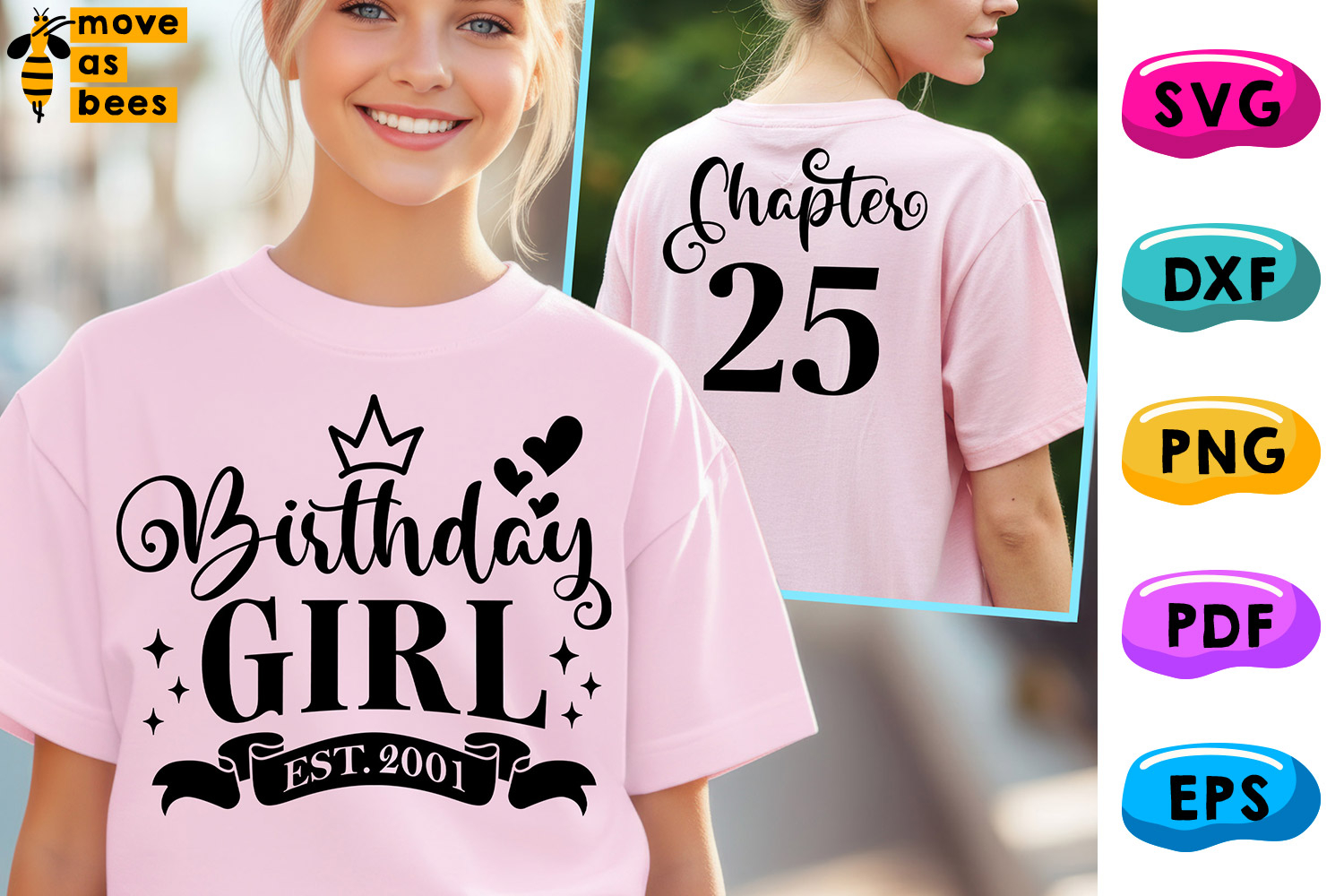 25th Birthday Girl Svg, Png, Est 2001 Chapter 25 Girl Shirt, for Cricut etc., Template for Sublimation, Cricut, Silhouette, Iron on, Heat Press Transfer