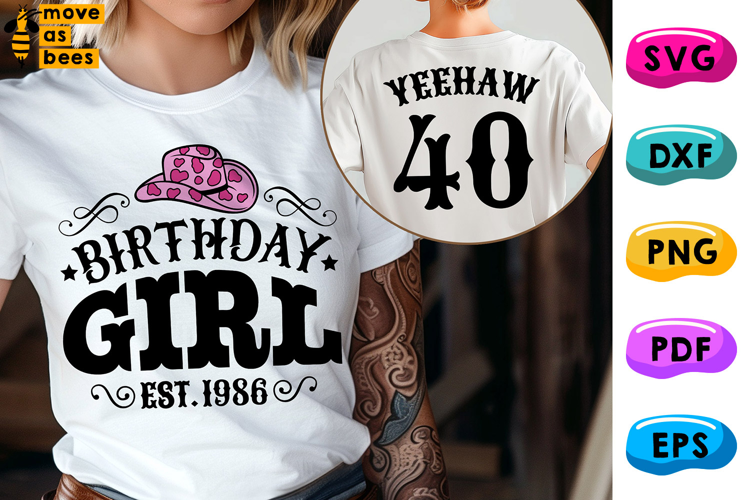 40th Birthday Girl Svg, Png, 1986, Country, Cowgirl, Western, for Cricut etc., Template for Sublimation, Cricut, Silhouette, Iron on, Heat Press Transfer