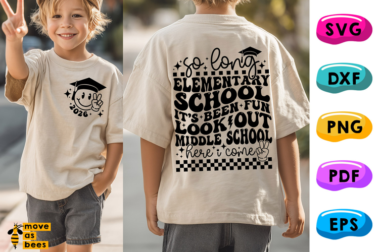 So Long Elementary School, Middle School Here I Come, 2026, Template for Sublimation, Cricut, Silhouette, Iron on, Heat Press Transfer