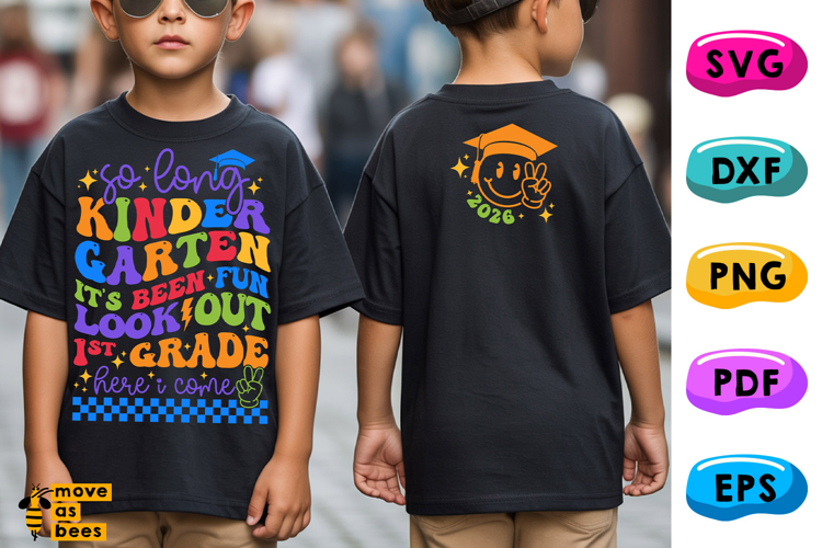 Cricut Digital Download Sublimation 1st Day Of School Svg 1st Grade Here I Come Svg So Long Kindergarten Svg Dtf Printing File Back To School 2026 Svg Kids Graduation 2026 Svg