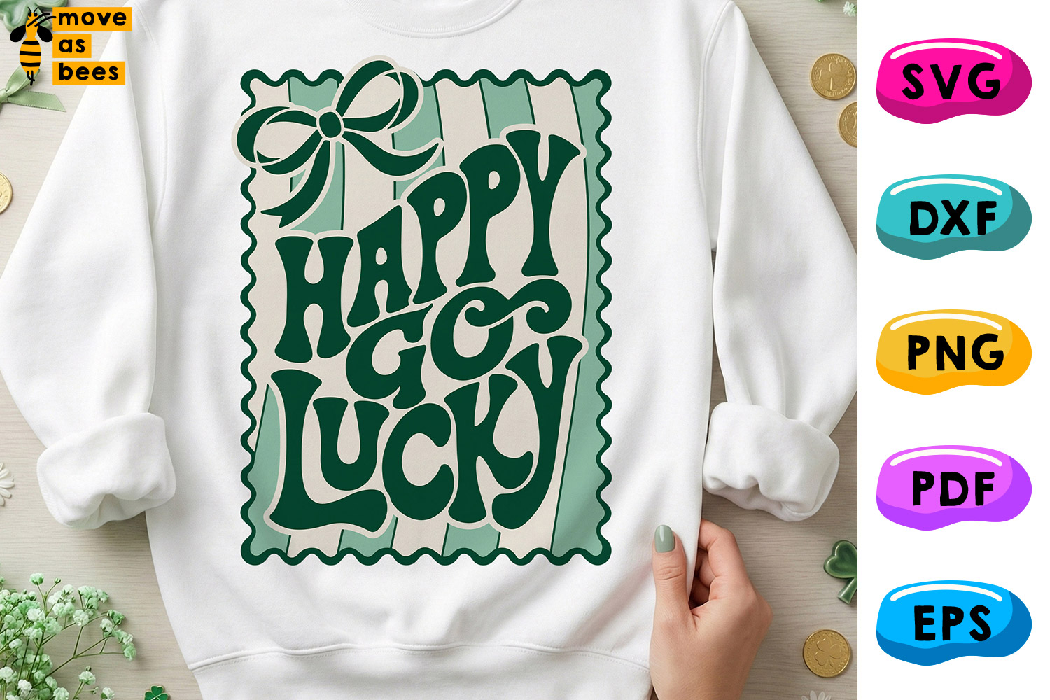 Happy Go Lucky Svg, Png, Preppy Bow, Stripes, Patrick's Day, Cricut, Sublimation, Silhouette, Iron on, Heat Press Transfer