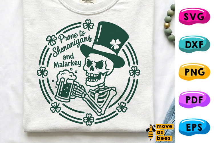 Cricut Silhouette Digital Download Sublimation Template Patrick's Shirt Svg Boy Patrick's Shirt Svg Dtf Printing Prone To Shenanigans And Malarkey Png Partick's Day Svg Skeleton With Beer Mug
